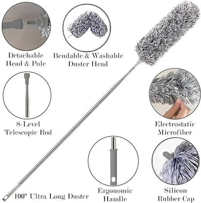 Effortlessly clean high surfaces like ceiling fans with our Microfiber Flexible Duster equipped with a long rod for long reach.